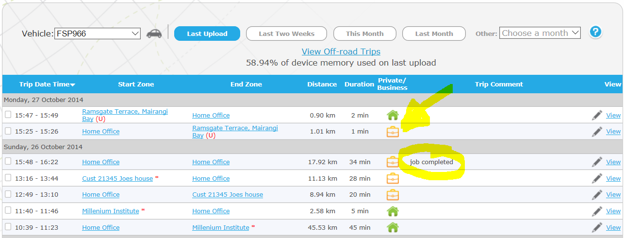 NB: You can also click in the Trip Comment field to capture a comment for each trip!